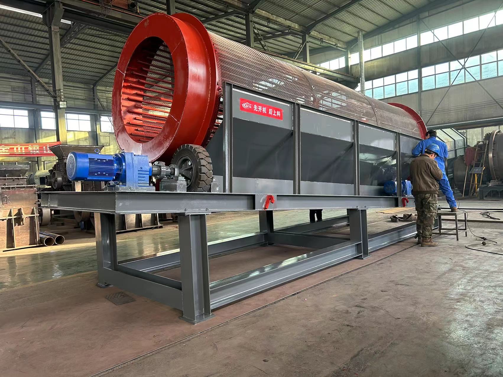 無(wú)軸滾筒篩由于其無(wú)軸設(shè)計(jì),避免了物料纏繞在軸上的問(wèn)題,不會(huì)出現(xiàn)復(fù)雜物料纏繞軸的問(wèn)題,這使得它在處理大塊物料或復(fù)雜物料時(shí)具有優(yōu)勢(shì),避免了主軸纏繞問(wèn)題,同時(shí)還能防止篩孔堵塞。