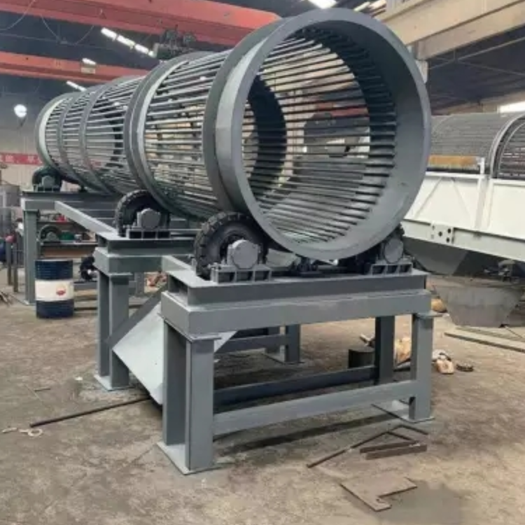無軸滾筒篩簡稱滾筒篩,采用旋轉(zhuǎn)式篩分方法,物料在滾筒內(nèi)不斷翻轉(zhuǎn)滾動,有效減少了物料堵塞篩網(wǎng)的情況發(fā)生,效率高達95%以上,主要用于中、細碎物料的分級篩選。
