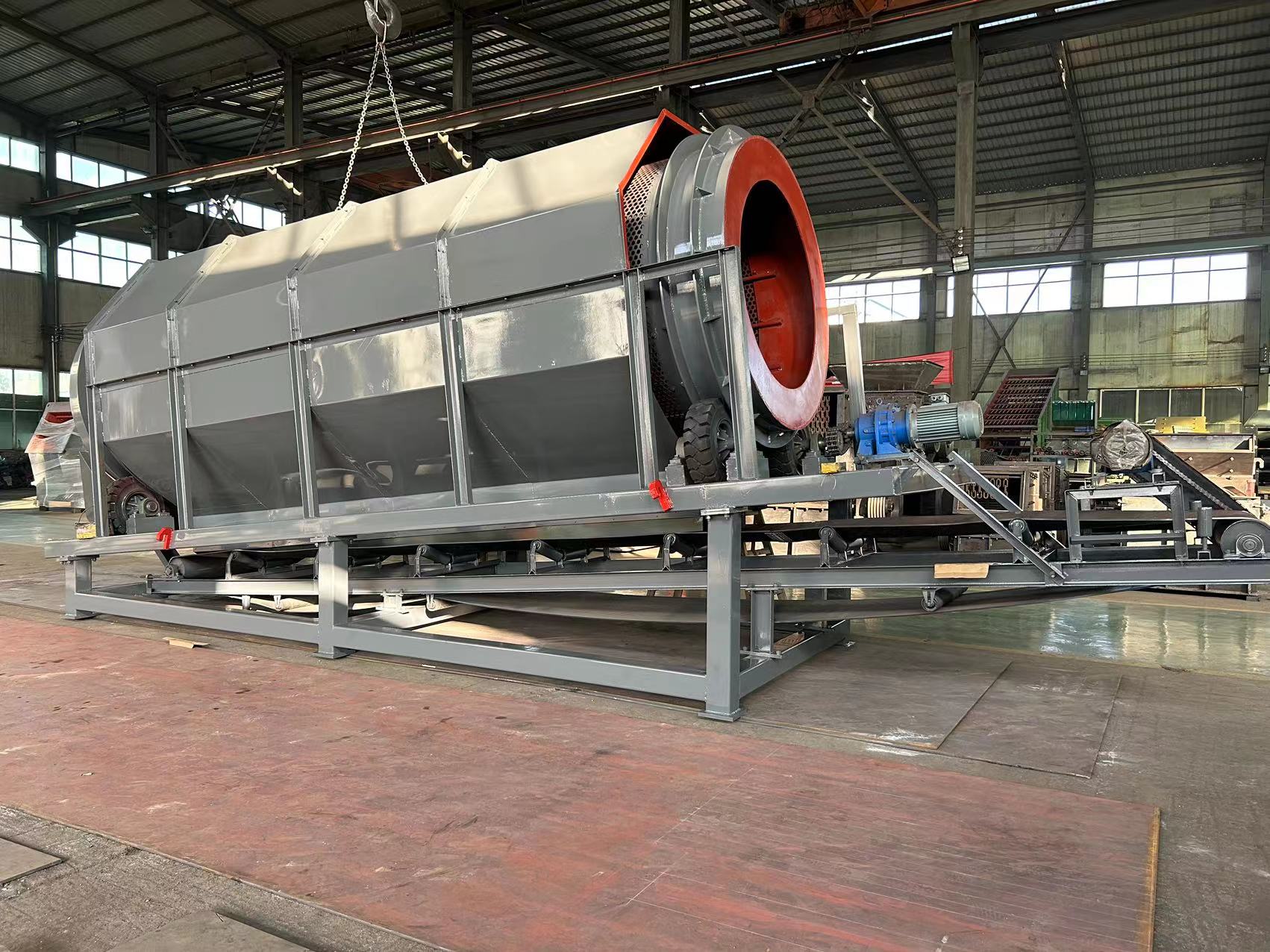 滾筒篩是分選技術中應用非常廣泛的一種機械,是通過對顆粒粒 徑大小來控制垃圾分選的,分選精度高。滾筒篩的產量為每小時50-800噸,產量越大,滾筒的體積越大,篩筒直徑為1000-2200mm,篩筒長度為1500-6500mm